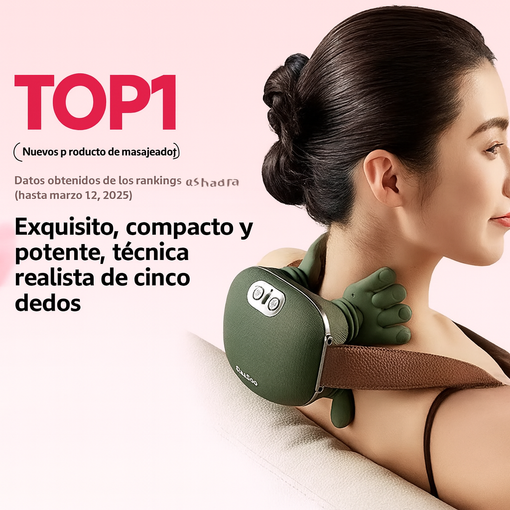 El masajeador Manos Mágicas™ reproduce la sensación de unas manos reales gracias a su sistema de amasado con cuatro dedos y presión de pulgar, diseñado para aliviar profundamente el cuello y los hombros.