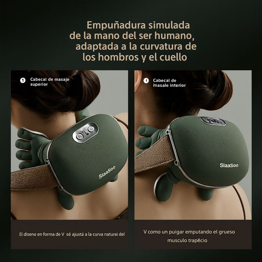 El masajeador de cuello y espalda Manos Mágicas™ ofrece un masaje de amasamiento 4D que proporciona una experiencia envolvente y reconfortante, ayudando a reducir la tensión muscular y aportando una relajación profunda en la zona cervical.